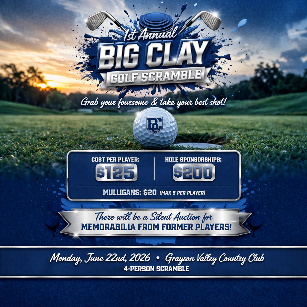 Register for the 1st Annual Big Clay Golf Scramble benefiting the CCHS Football Team!